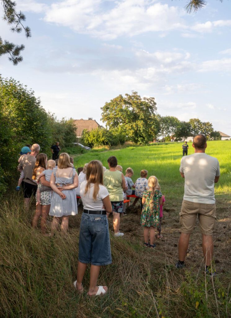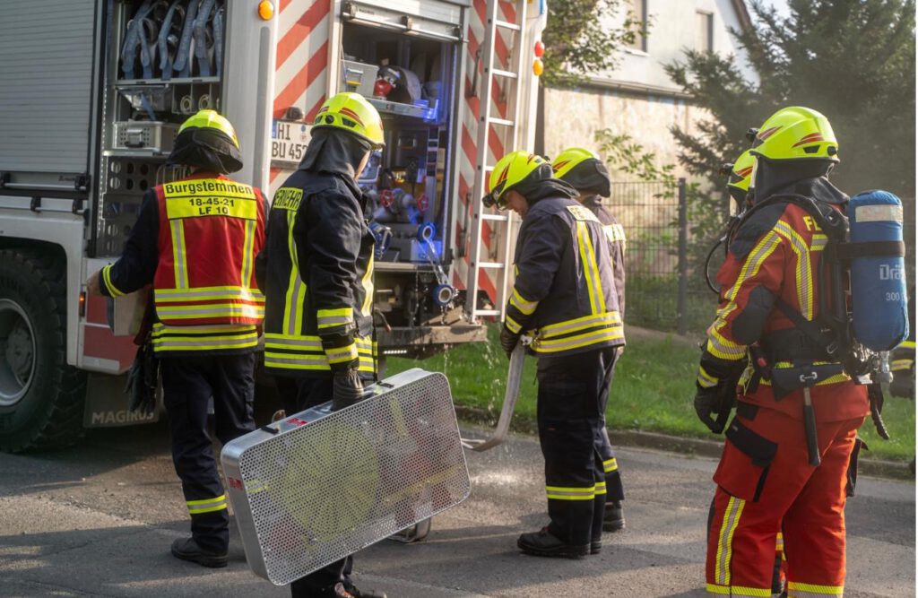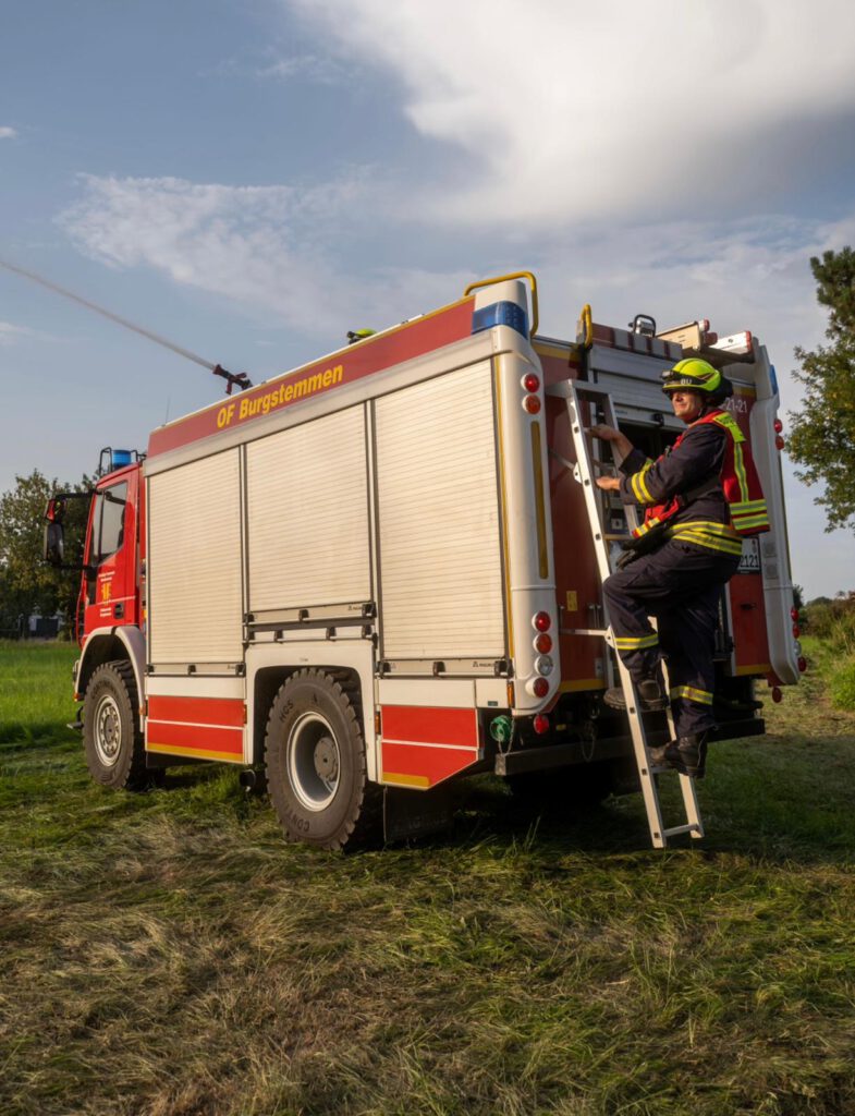 Burgstemmen – Rund 80 Bürgerinnen und Bürger aus der Gemeinde Nordstemmen verfolgten am Dienstagabend den 12.08.2025 eine Schauübung der Ortsfeuerwehr Burgstemmen. Auf einem Feld am Paradies, gegenüber des Spielplatzes, wurde die Bekämpfung eines Vegetationsbrandes realitätsnah nachgestellt.
